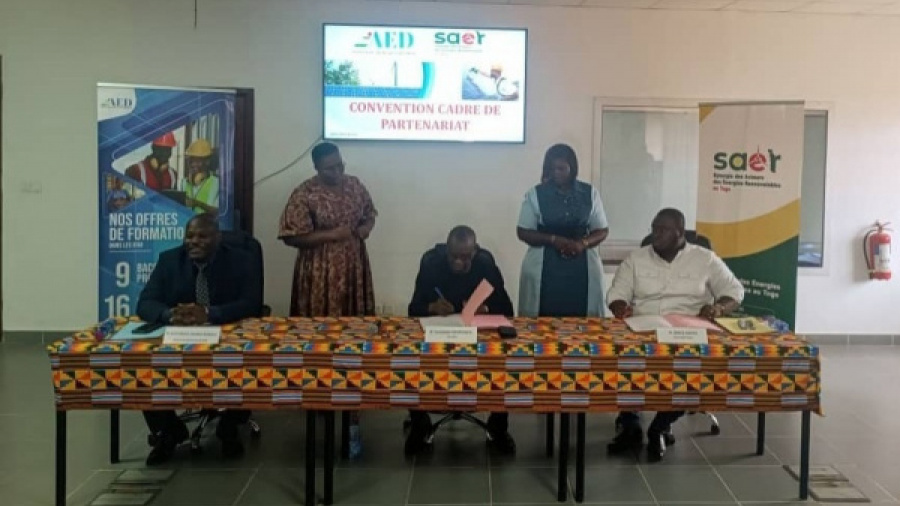 Togo’s Education Development Agency (AED), the agency overseeing IFAD training centers, and the Synergy of Renewable Energy Actors (SAER) formalized their partnership on Friday, November 7, to strengthen cooperation in the renewable energy sector.
